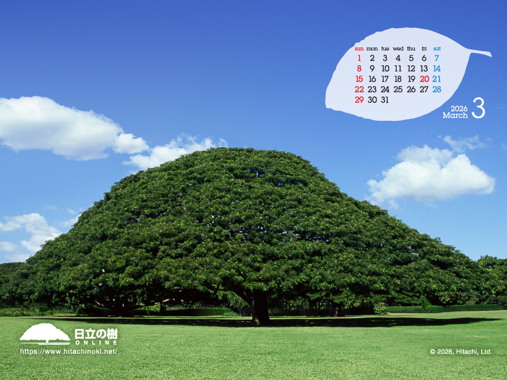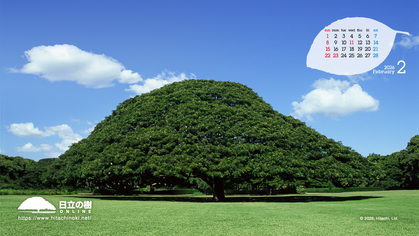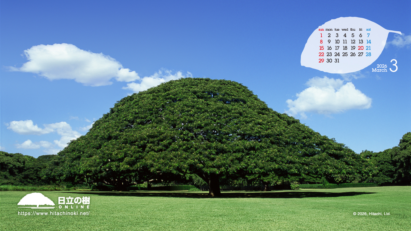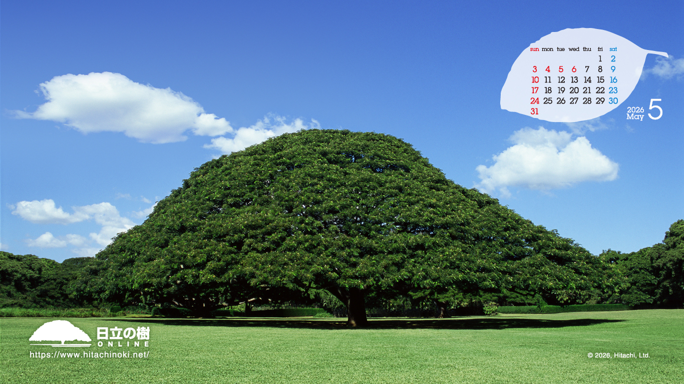 「日立の樹」の壁紙です。カレンダー付き壁紙を毎月更新しています。